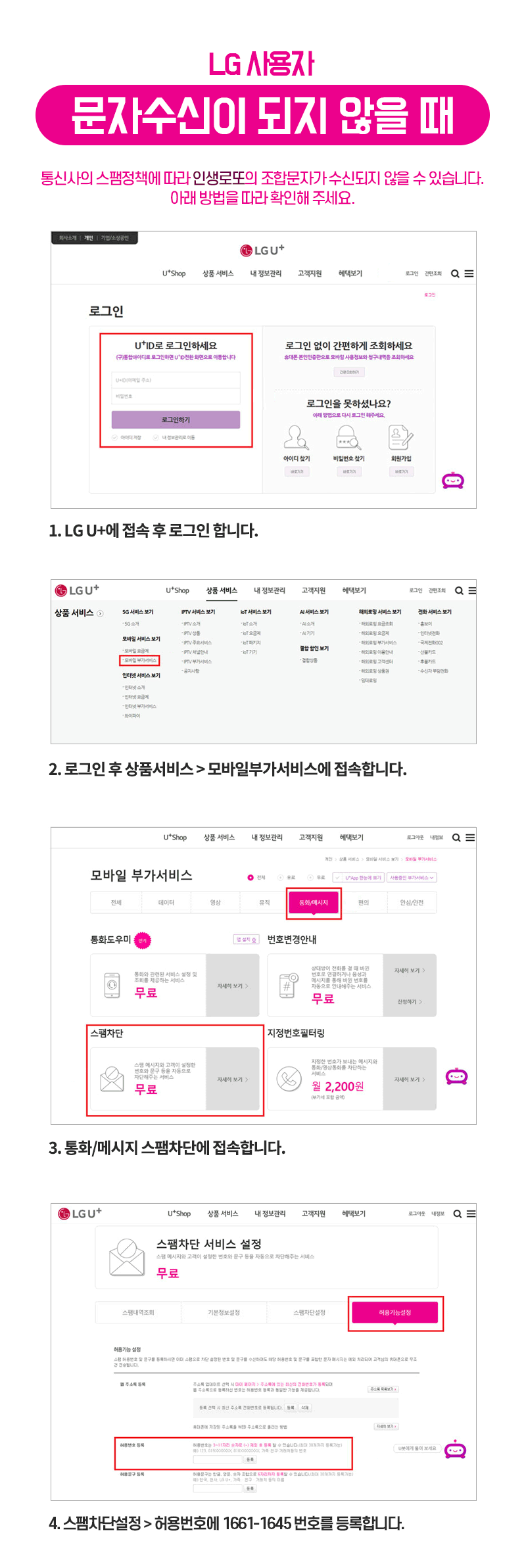 인생로또의 조합문자가 오지 않을 경우 안내드립니다.